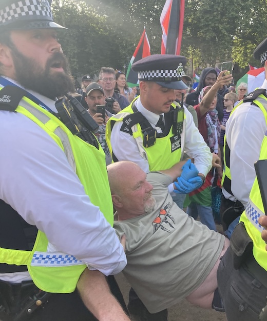 Let us remember something important: The task assigned to the police is to enforce a political policy that lets the UK government carry on being complicit in genocide. It lets the government tear up a system of international law that was specifically established to prevent future Holocausts. And it lets the government further erode fundamental civic and legal rights that our ancestors won over many generations.